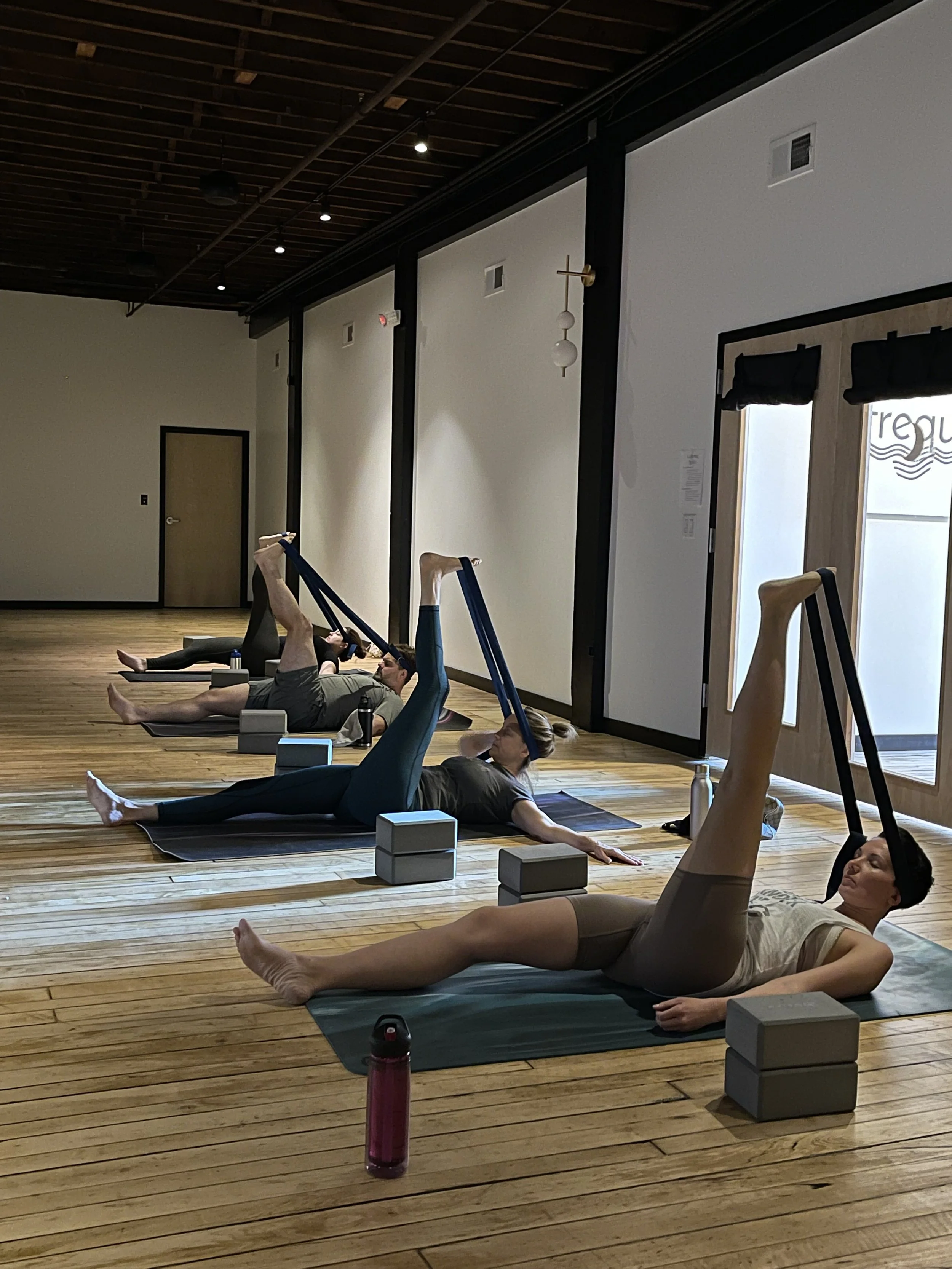 👉What it looks like: A community prenatal yoga class led by Molly Deutschbein and Heather Acomb